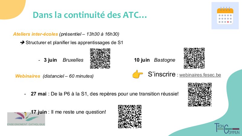 Vous trouverez ci-dessous tous les documents présentés, produits ou consultés lors des Ateliers Tronc Commun.
